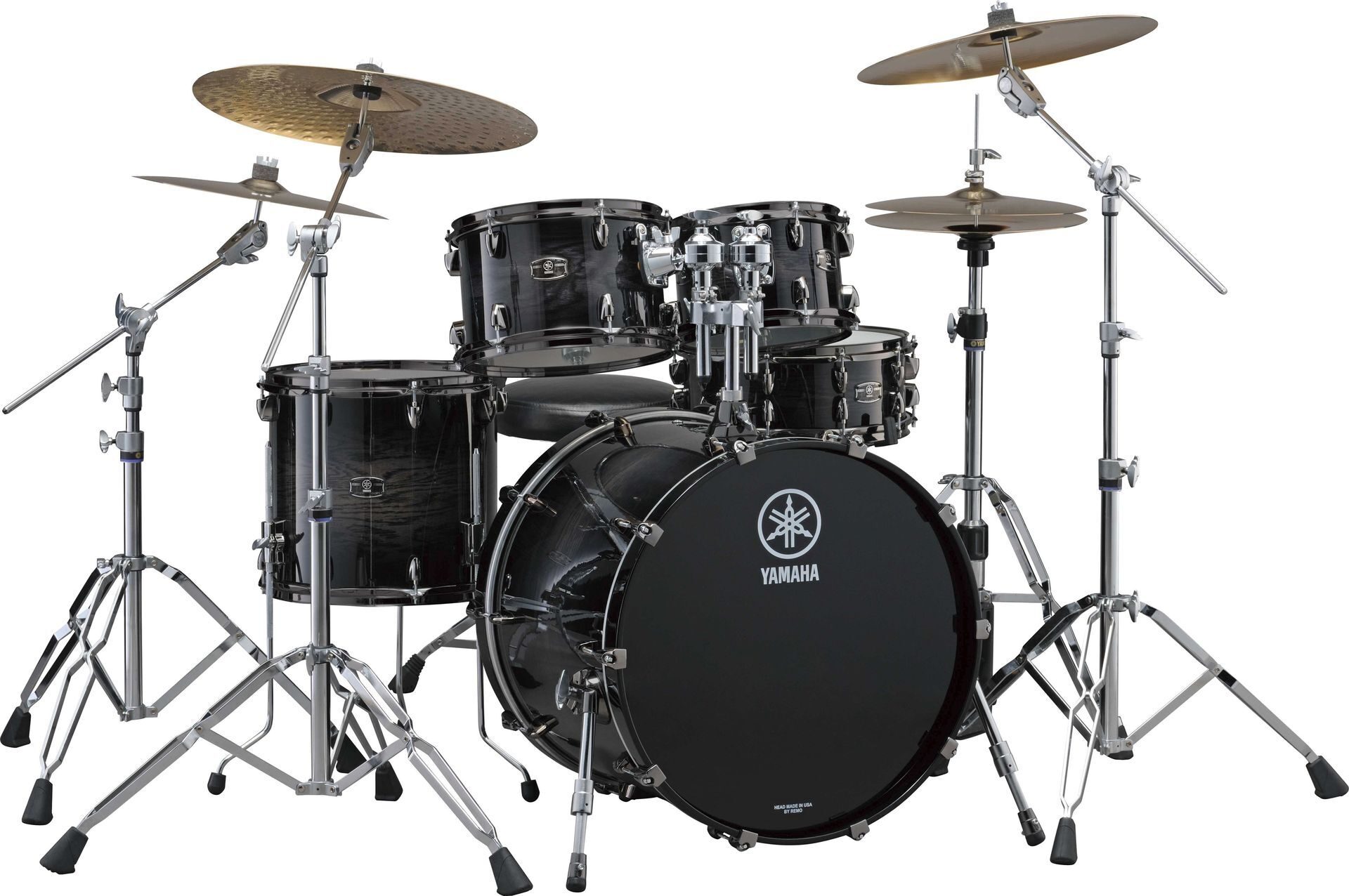 Томы и напольные томы оснащены прозрачными пластиками Remo серии Emperor, которые славятся глубоким звуком и большой долговечностью.