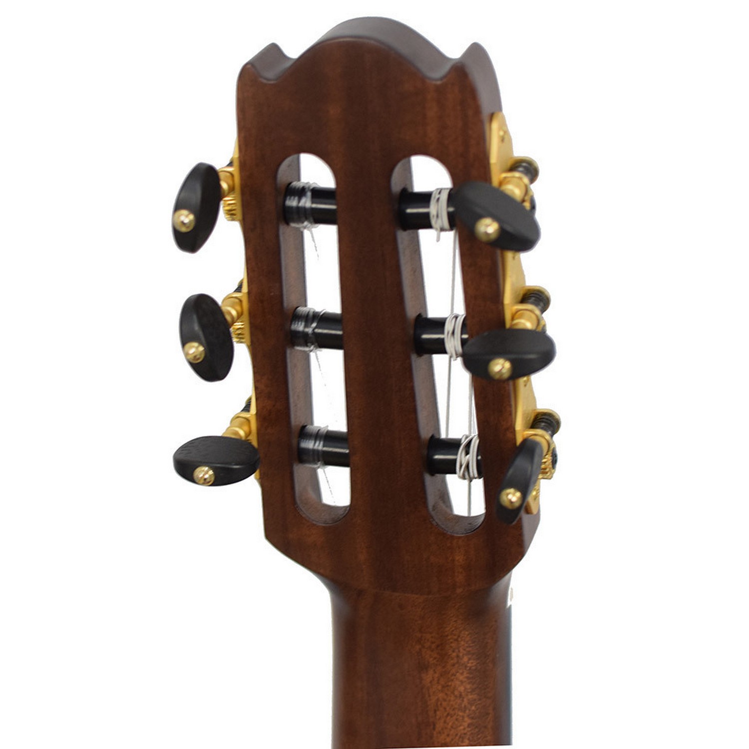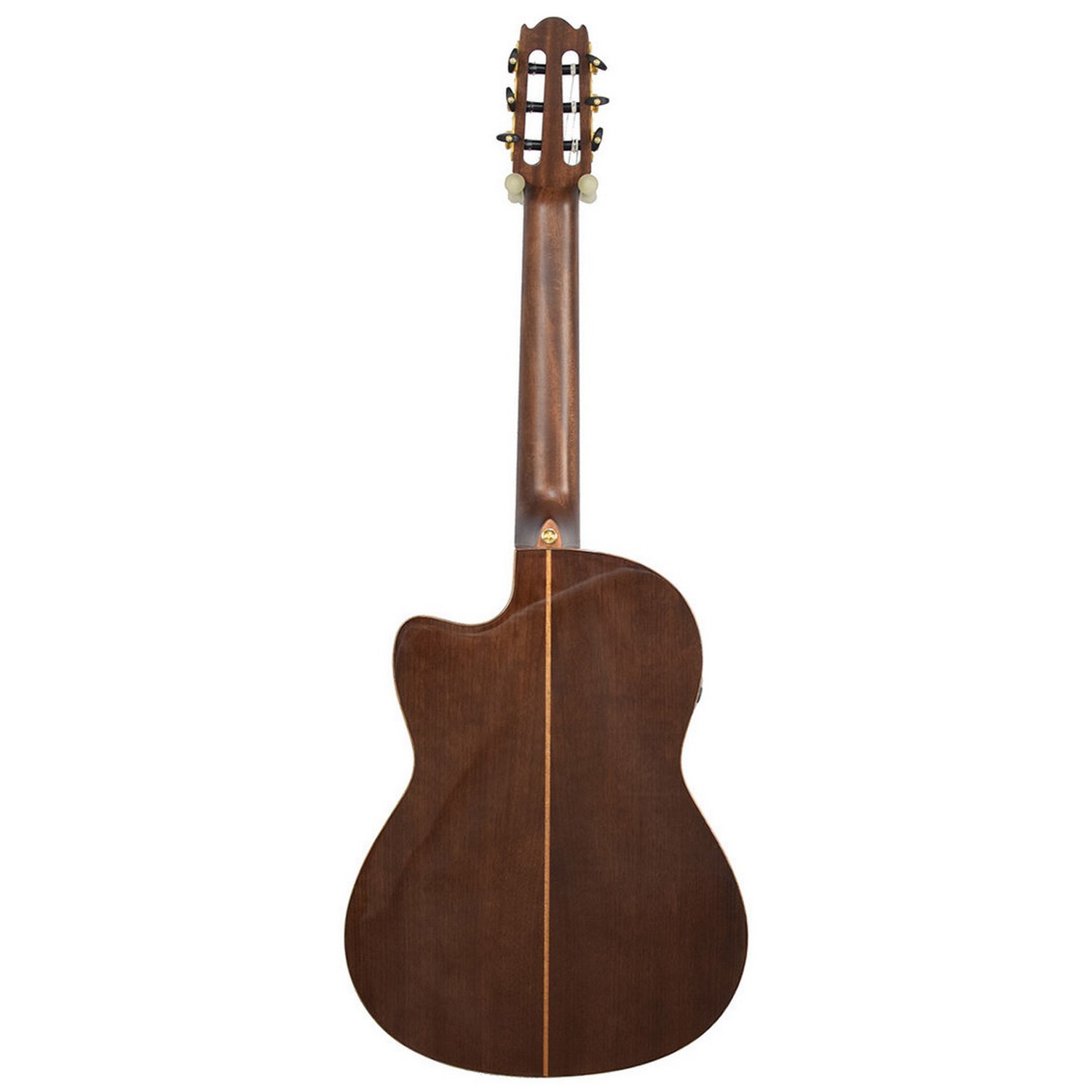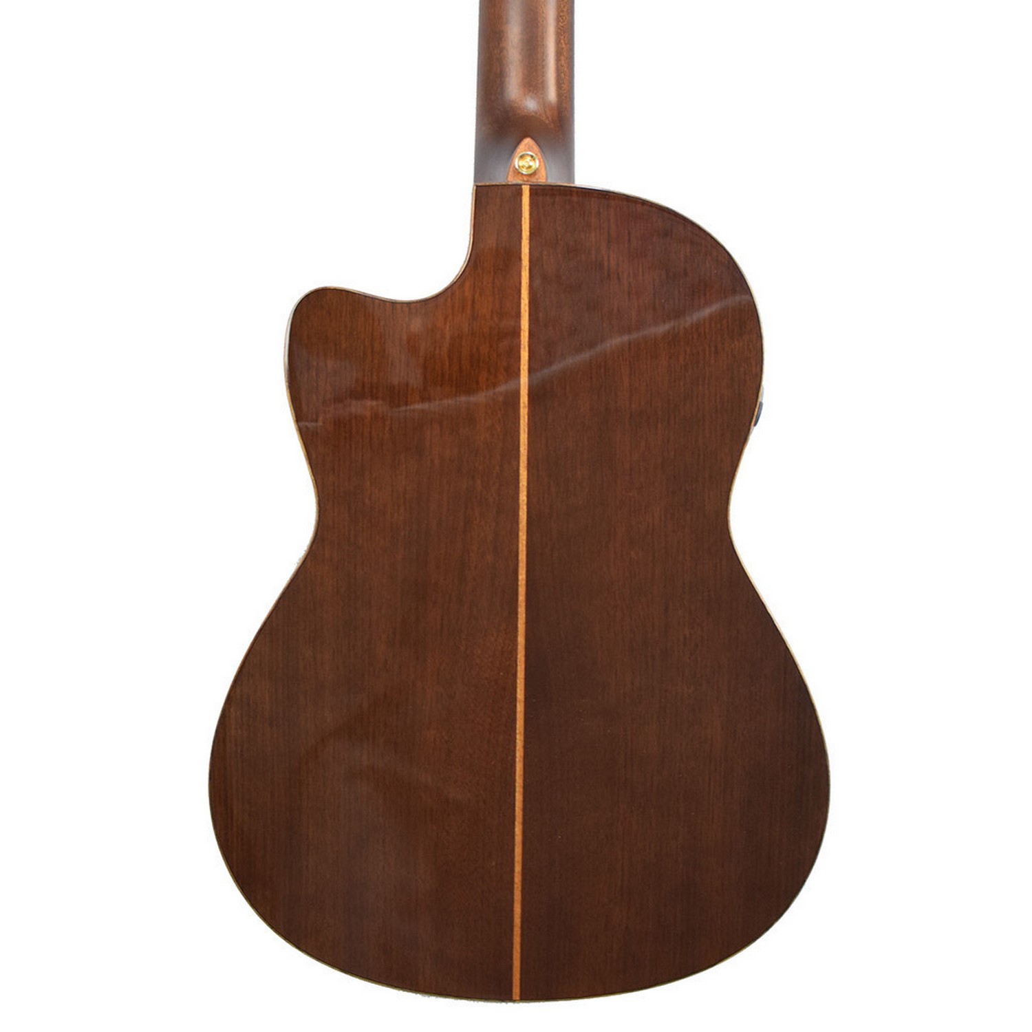 Нижняя дека и обечайки: Выполнены из цельного ореха (Solid Walnut). Эта плотная и отзывчивая древесина придает звучанию теплоту, фокусировку средних частот и длинный, певучий сустейн, идеально дополняя яркость ели.