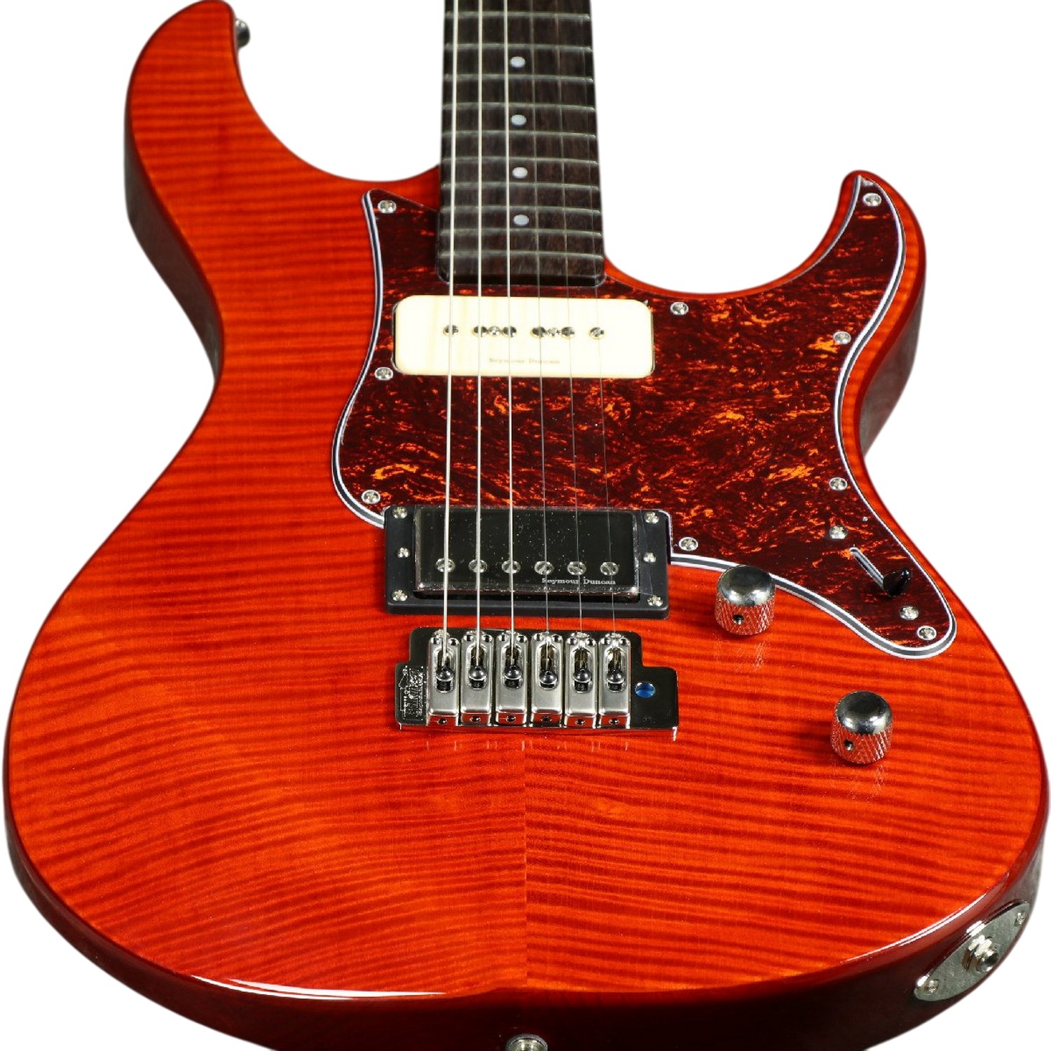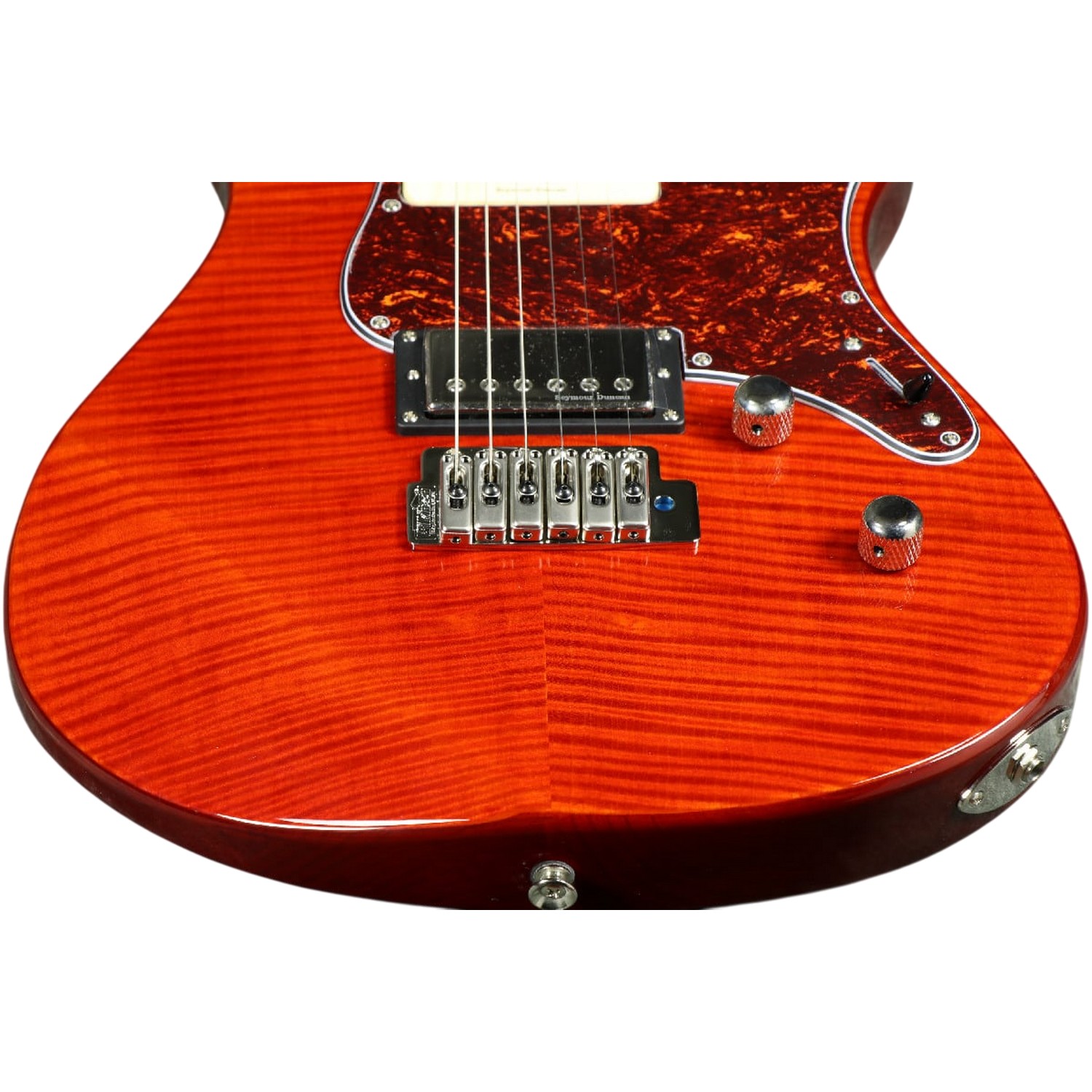 Мощный и продолжительный сустейн рождается благодаря синергии тщательно подобранных материалов. Корпус из ольхи, известной своим сбалансированным тембром с выраженными средними частотами, служит идеальной акустической основой. Его украшает премиальный топ из шпона огненного (flamed) клена, который не только придает инструменту статусный и индивидуальный внешний вид, но и вносит свой вклад в общий резонанс. В сочетании с фиксированным бриджем, обеспечивающим максимальный акустический контакт струн с корпусом, эта конструкция формирует живой, динамичный и насыщенный обертонами фундамент для легендарных звукоснимателей Seymour Duncan.