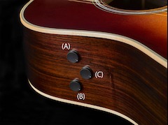 Отсек для батареек, встроенный в нижний разъем. Такая конструкция позволяет сократить количество отверстий в корпусе, дополнительно уменьшая потери звука. Подключите кабель от разъема к портативной активной системе или усилителю, чтобы использовать в качестве электро-акустической гитары.