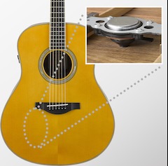 Актуатор на внутренней поверхности нижней деки вибрирует вместе со струнами. Его вибрации, в свою очередь, передаются на корпус инструмента, создавая аутентичное звучание реверберации и хоруса, исходящее изнутри гитары.
