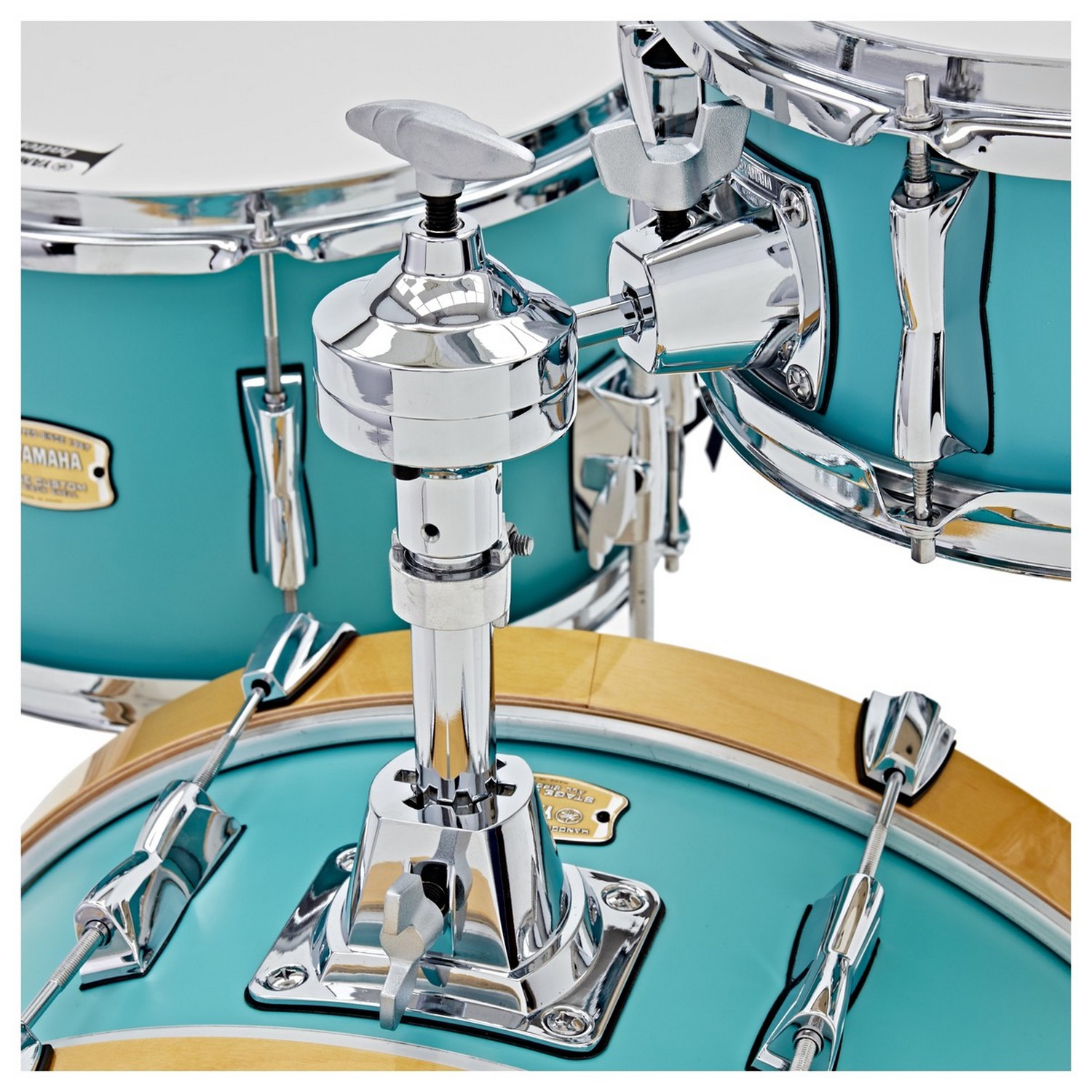 Надёжность и продуманность каждой детали — визитная карточка Yamaha. Большие шаровые крепления из высокопрочного синтетического каучука в хромированной оправе обеспечивают жёсткую фиксацию том-томов в любом положении. Эргономичный барашковый болт из титана позволяет легко затягивать крепление без инструментов. Эта система также обеспечивает простой доступ к нижнему пластику для тонкой настройки — достаточно перевернуть барабан.