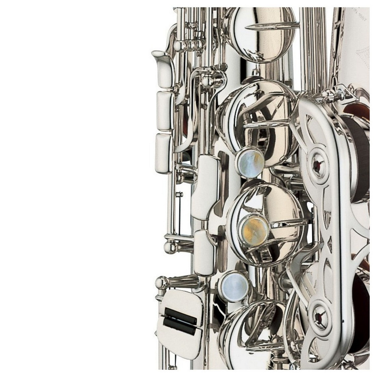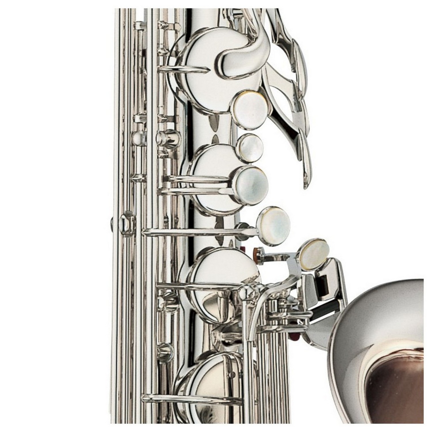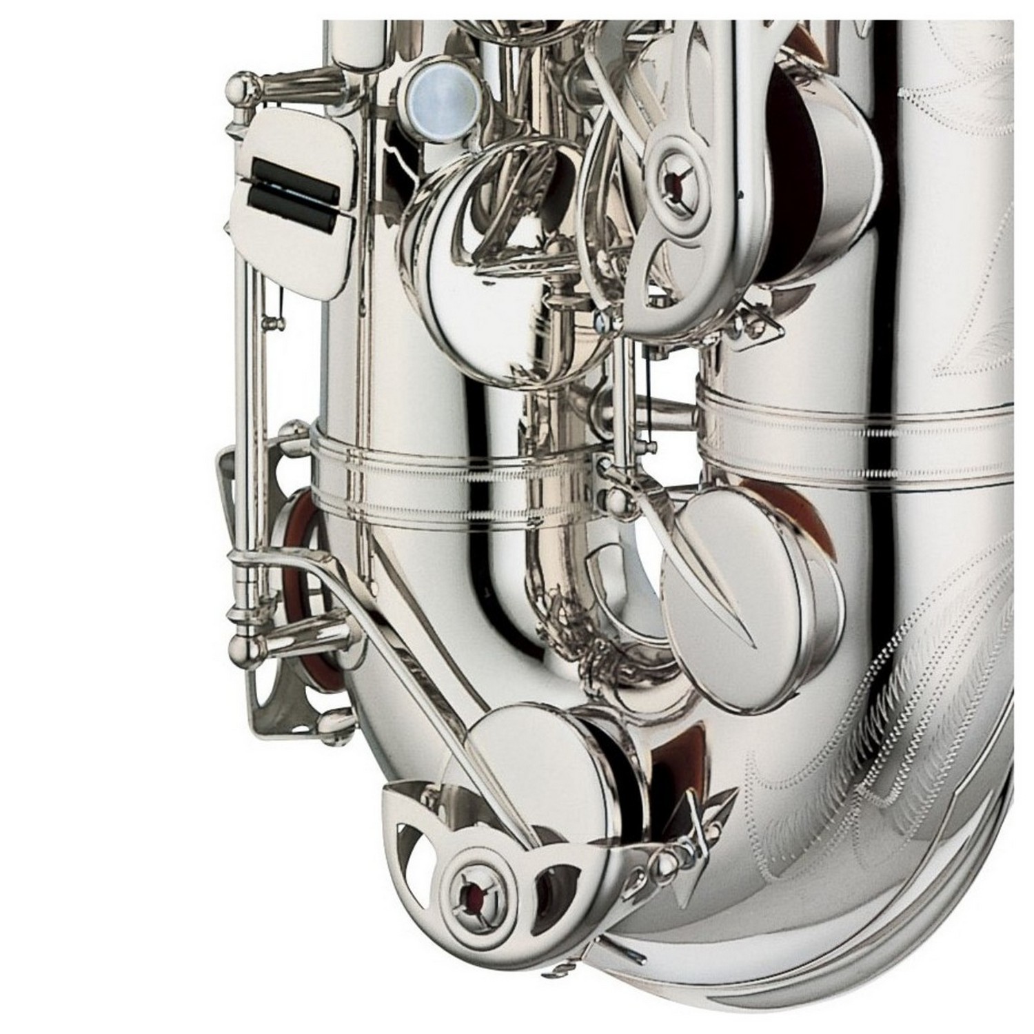 Укрепляющая пластина в районе нижнего колена была убрана на модели альтового саксофона EX чтобы уменьшить сопротивление воздуха.